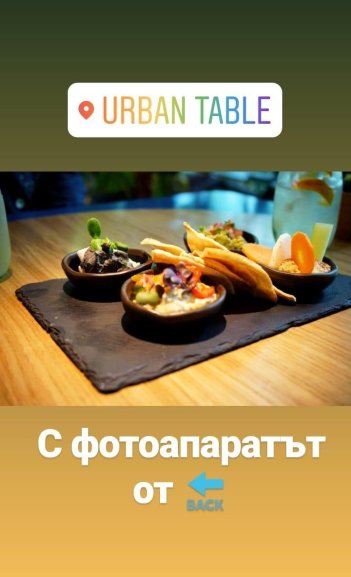 - Може би най-любимото ми място в София за хапване е Urban table. Намира се в парка Заимов и е изключително спокойно. Храната е БИО и предлагат доста сполучливи комбинации от вкусове. Десертите им са сурови и полезни, но удовлетворяващи като буркан Nutella.